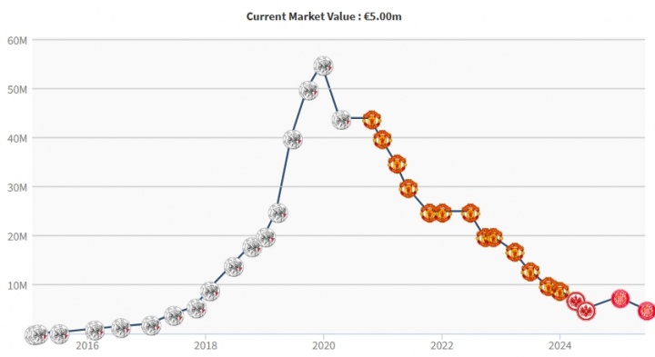 2019年底,范德贝克的身价达到了生涯巅峰的5500万欧,之后一路下滑,2020年夏窗,曼联花费3900万欧引进范德贝克,效力曼联4年间,范德贝克只为曼联出战62场比赛,贡献2球2助。范德贝克在曼联两度被外租,也都没有好的表现,他频频遭遇伤病,现身价仅剩500万欧。