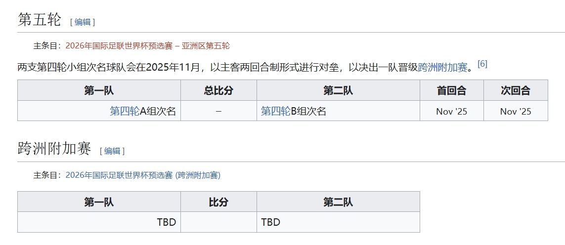 跨洲附加赛赛制:明年3月进行,排名较高2队进决赛 其余4队半决赛